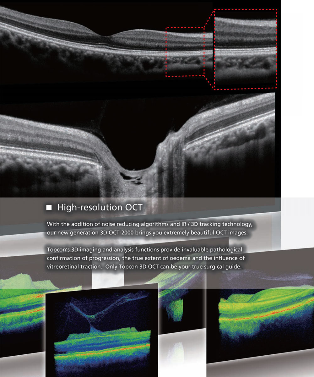 Acum aveți posibilitatea efectuării de tomografii retiniene (OCT) cu aparatură de ultimă generație, TOPCON 3D OCT 2000, pentru diagnosticul și urmărirea diverselor afecțiuni retiniene.